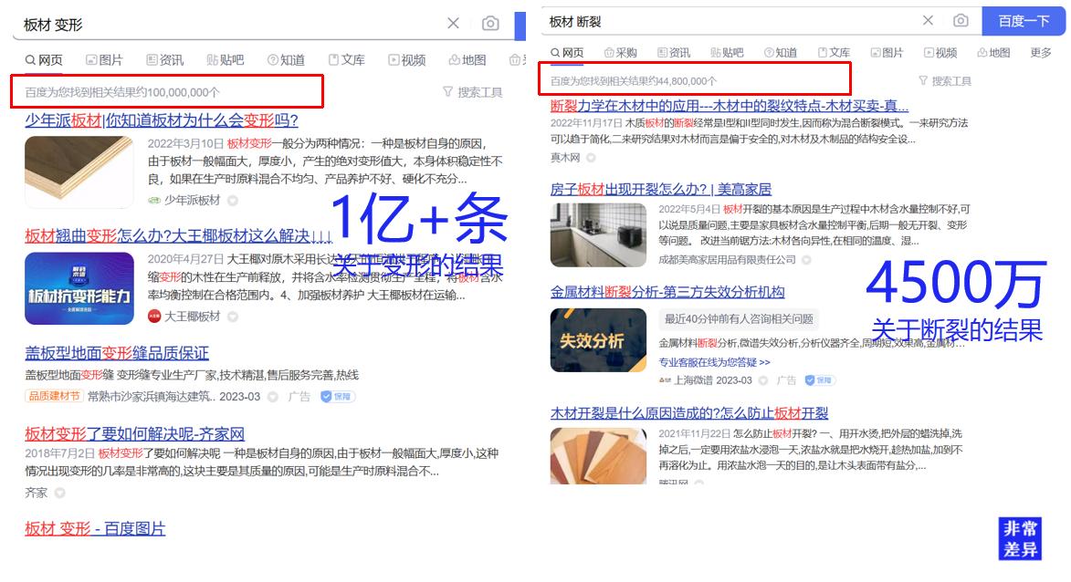 結(jié)論:板材的客訴幾乎全部來(lái)自于變形和斷裂,因?yàn)闄还裼袕?qiáng)承重的功能,人造板的用戶心智認(rèn)知中,“耐用、牢固”應(yīng)該是第1特性和巨大需求。