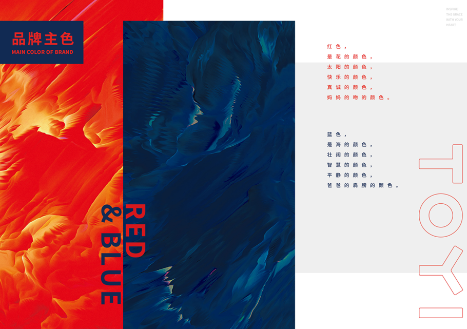 5.品牌色彩:品牌選擇了紅色和藍(lán)色作為主色調(diào),這兩種顏色不僅鮮明而且易于辨識,再配上白色和黑色,形成了TOYI童裝獨(dú)特的品牌色彩體系。